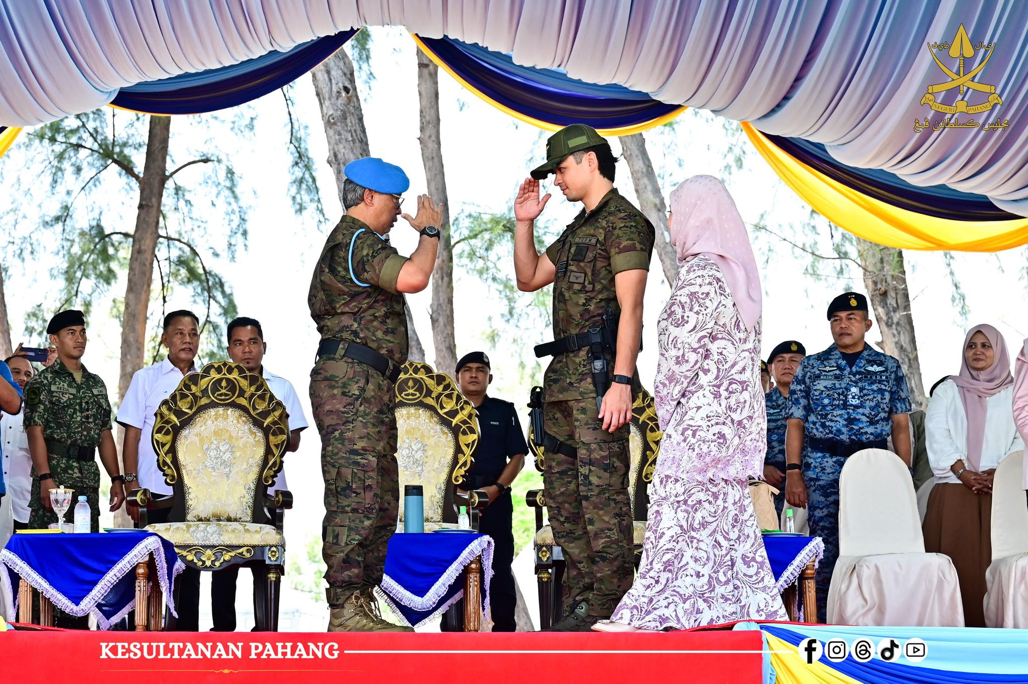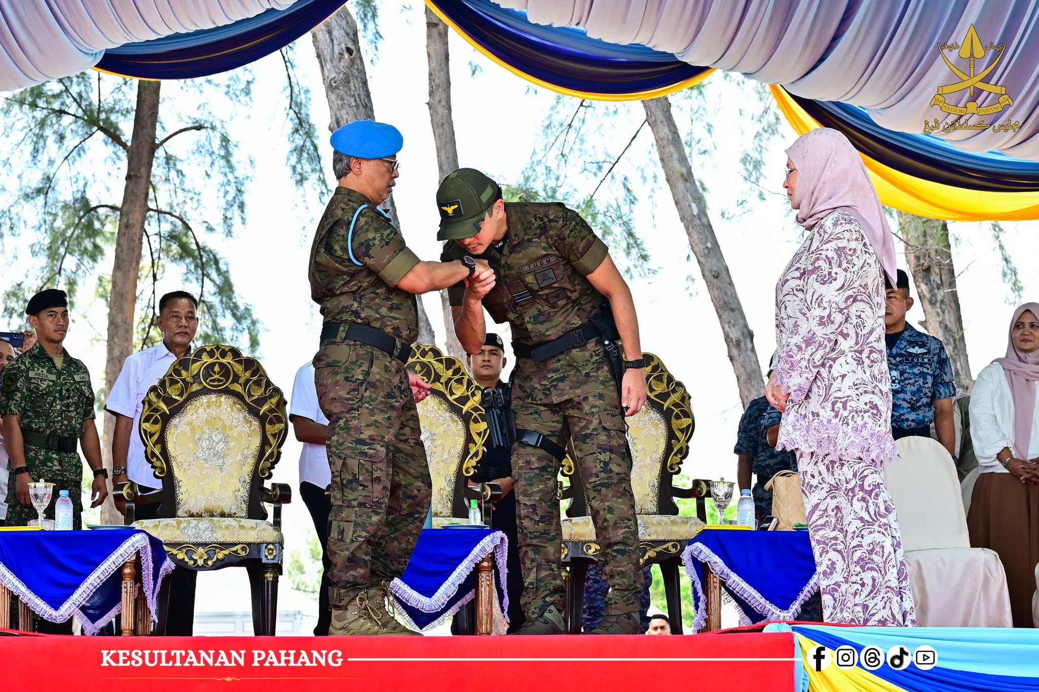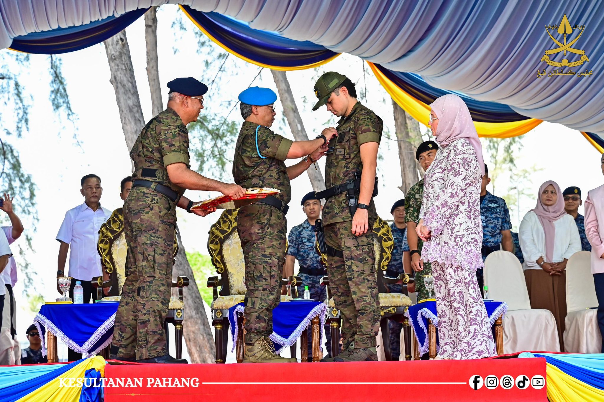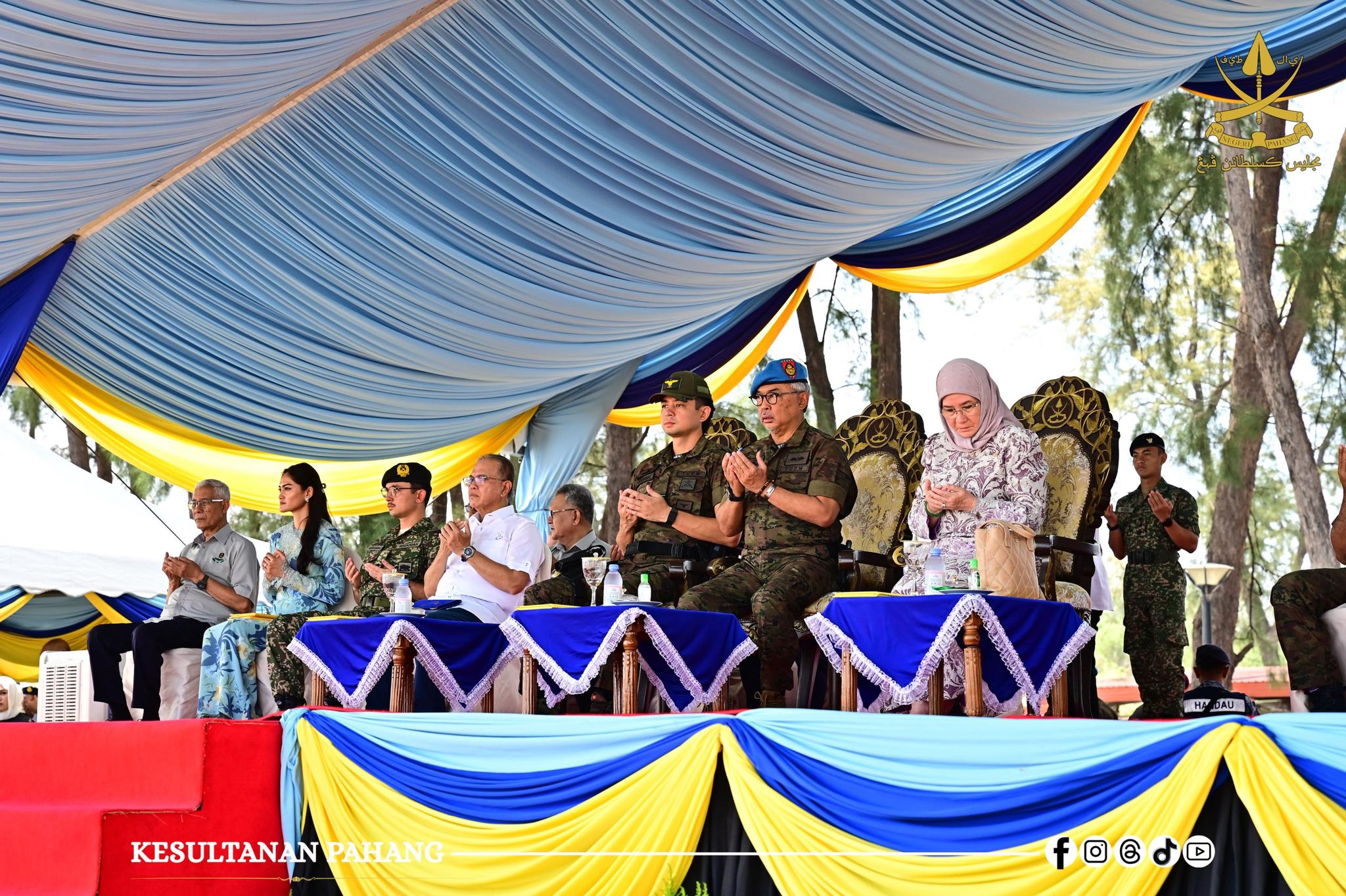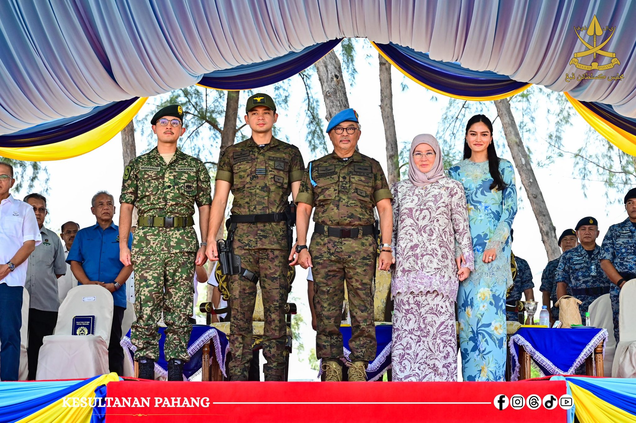 ROMPIN, 26 Oktober 2025 -Kebawah Duli Paduka Baginda Sultan Pahang Al-Sultan Abdullah Ri’ayatuddin Al-Mustafa Billah Shah Ibni Almarhum Sultan Haji Ahmad Shah Al-Musta’in Billah dan Kebawah Duli Paduka Baginda Tengku Ampuan Pahang Tunku Azizah Aminah Maimunah Iskandariah binti Almarhum Sultan Iskandar Al-Haj berkenan bercemar duli berangkat menyempurnakan Majlis Penutup Kursus Asas Pasukan Khas TUDM (PASKAU) Siri 32/25 di Pantai Hiburan, hari ini.